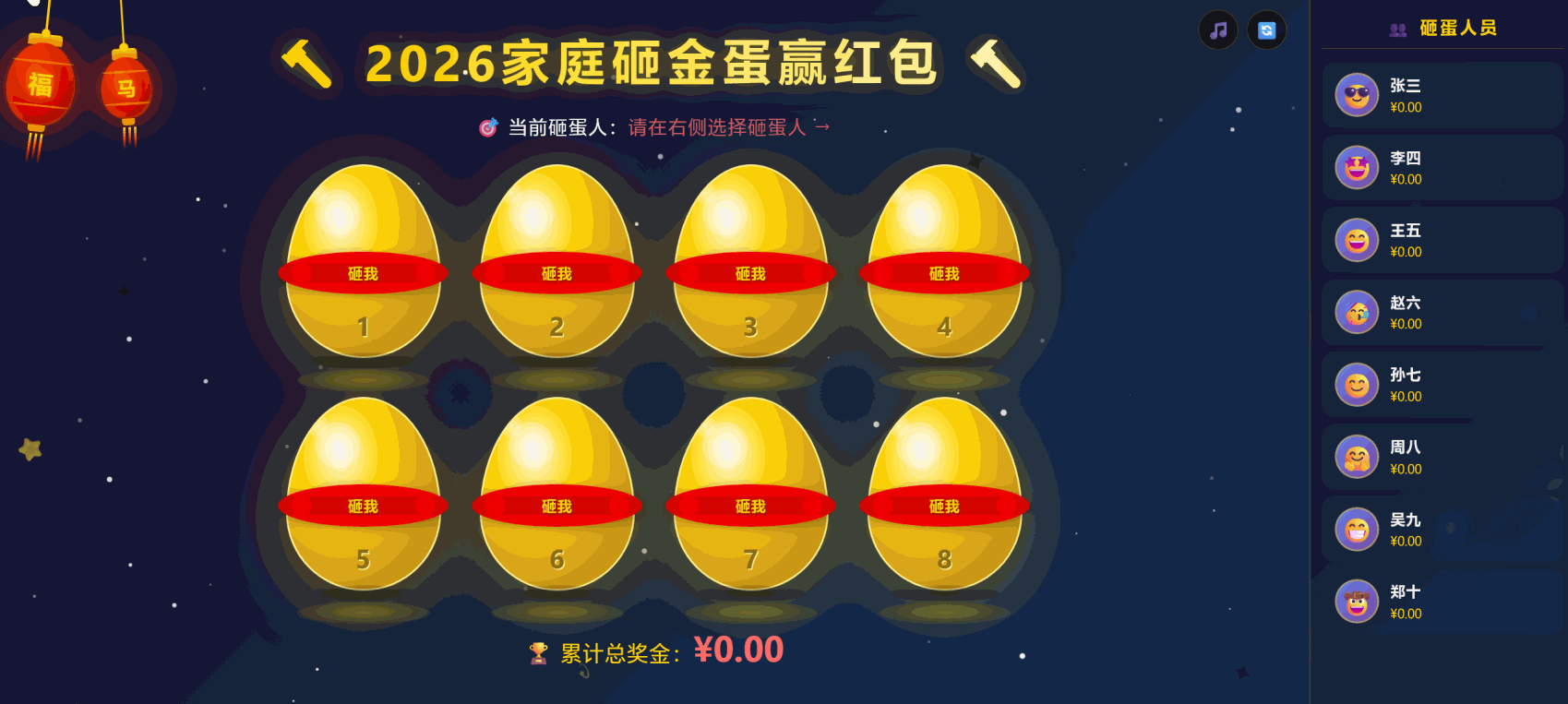 以上都支持春节序曲背景音乐,以及特效(转盘特效、砸金蛋特效、中奖特效),可以自己更换背景音。