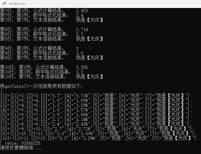 console.dump("第"++row++"行,第"+3+"列,公式计算结果:",value);